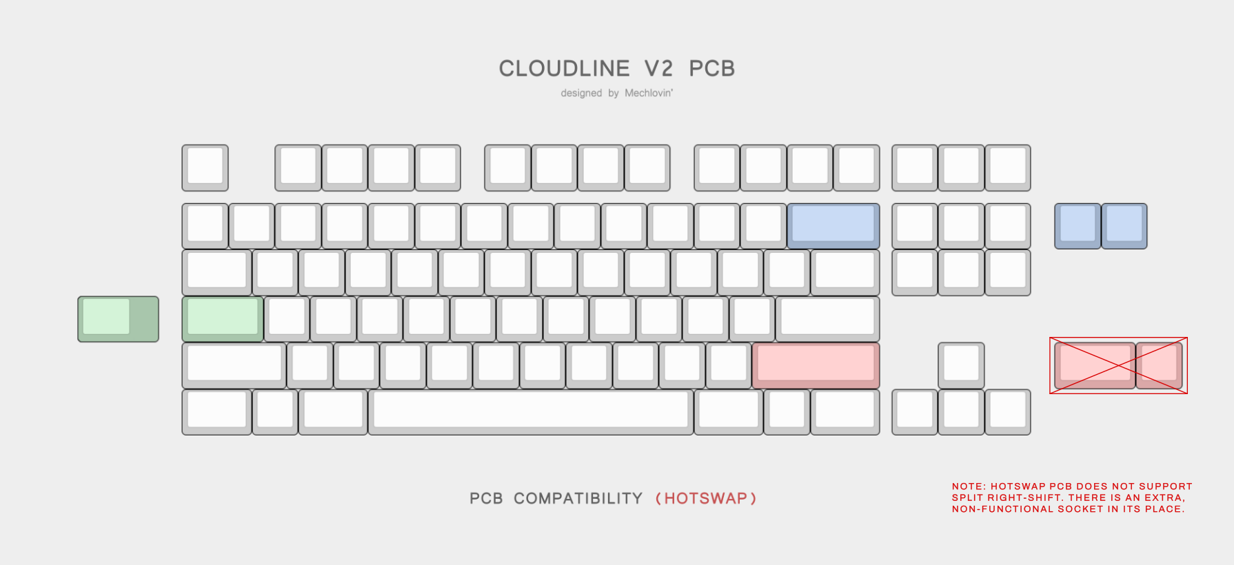 Note: On hotswap PCBs, split right-shift is NOT supported. There is an extra socket on the PCB which has no function. To reflect this, the price has been lowered to match the Soldered variant. Otherwise, these are visually and functionally perfect PCBs!