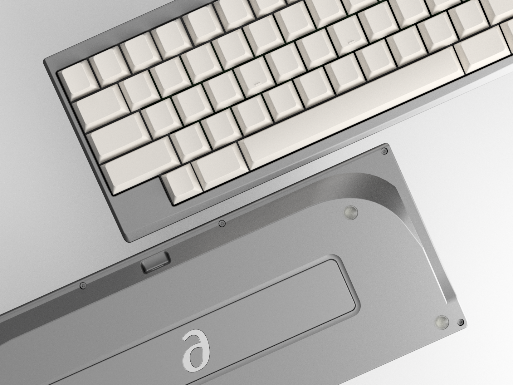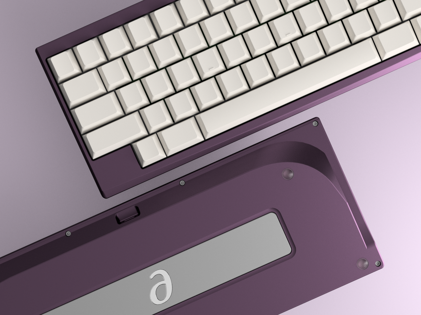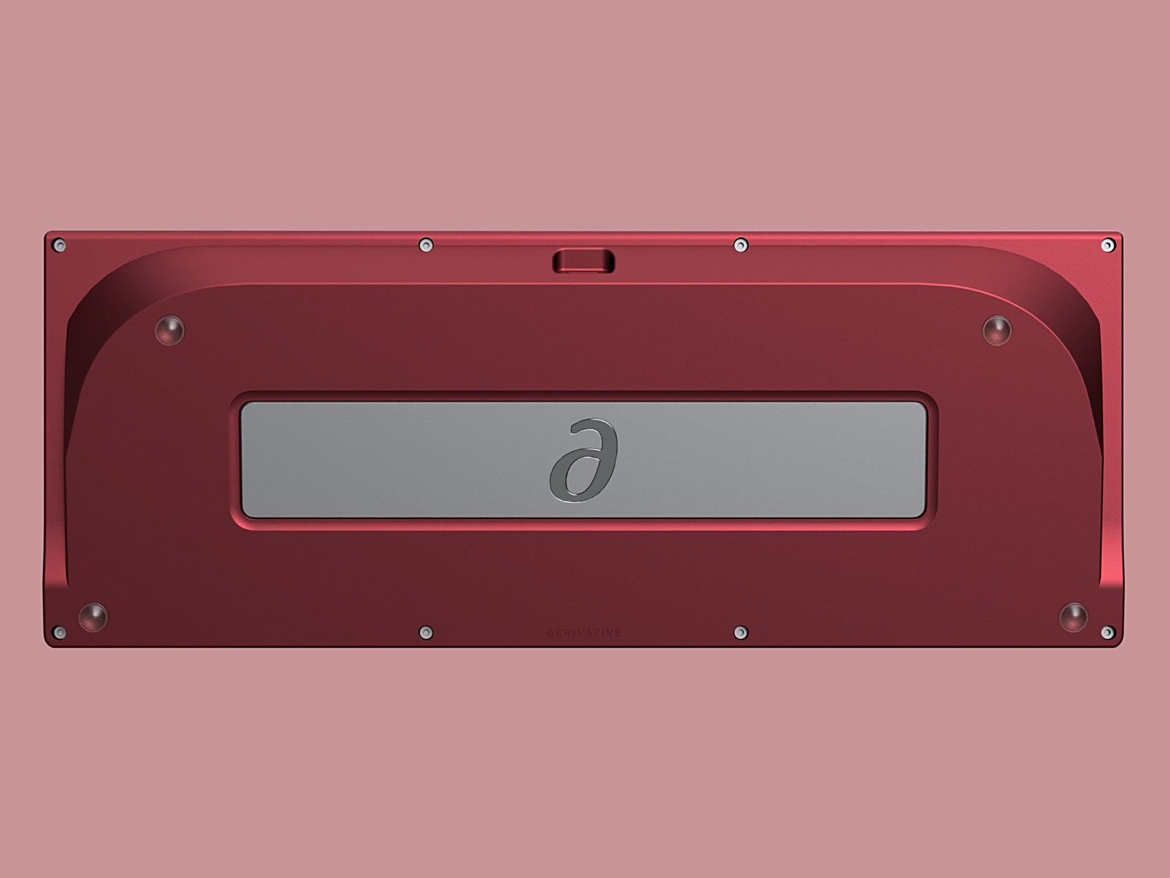 Derivative was designed to be a graceful balance between classic keyboard aesthetics and unique visual cues. Novel elements come together to create a distinct identity. A fresh & multi-faceted side profile, a subtle yet always-visible convex front-lip, and an inset two-piece weight with contrasting finishes are core concepts to the exterior design.