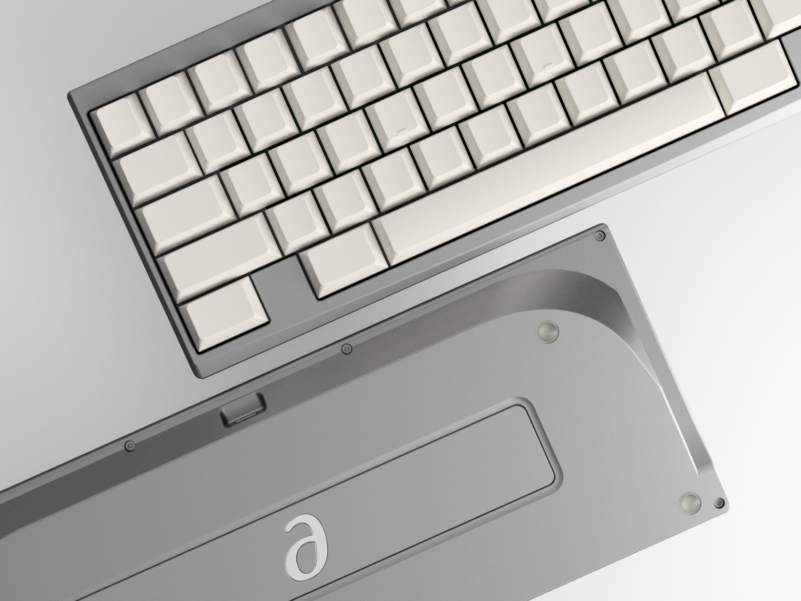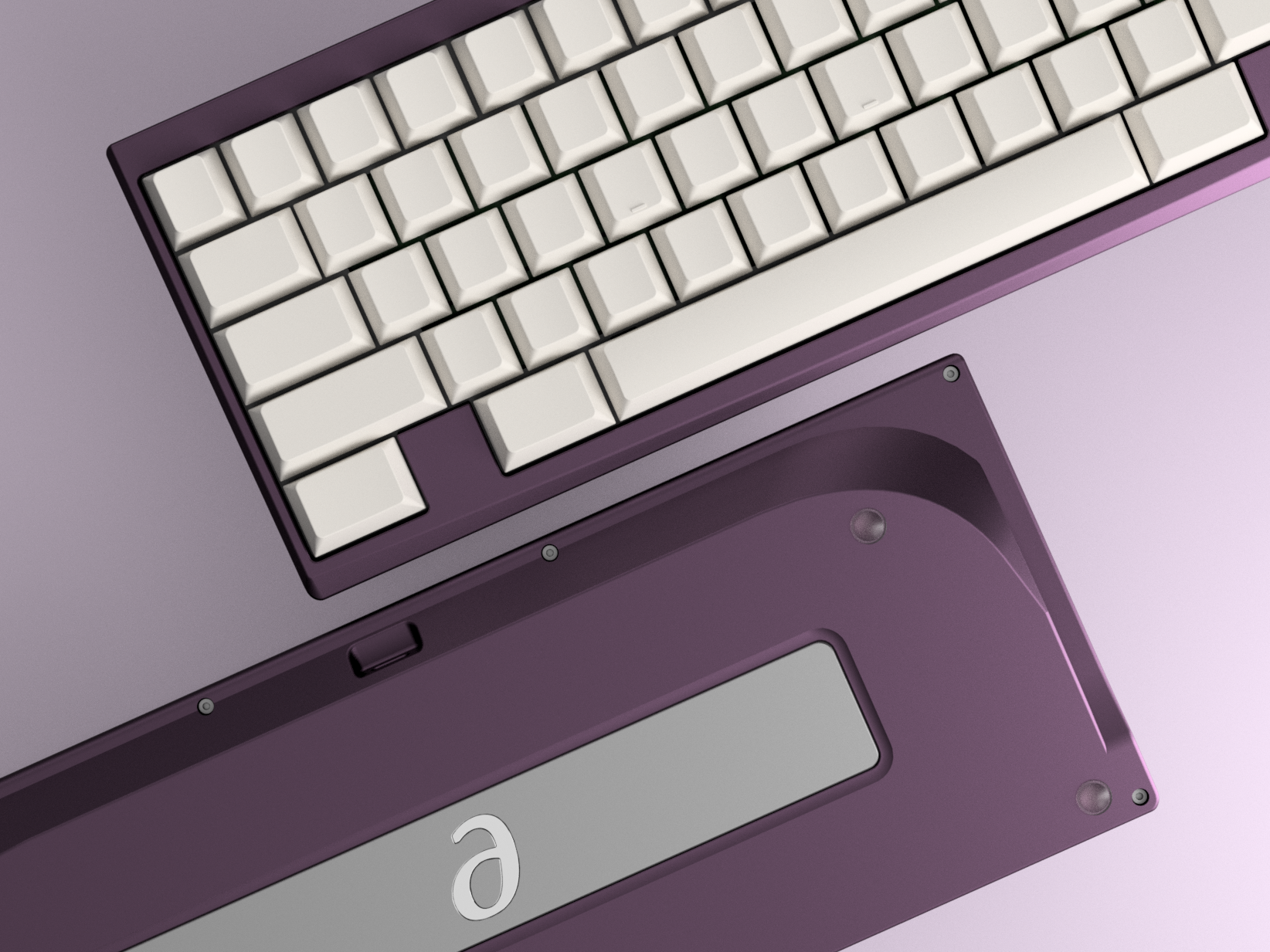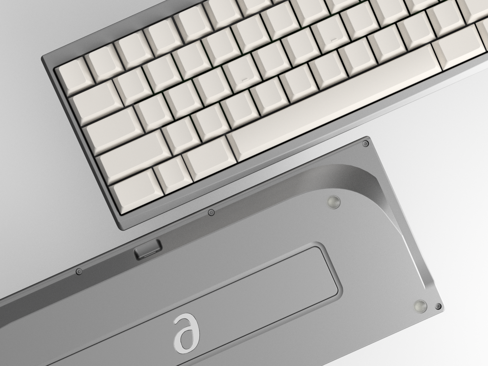 Derivative was designed to be a graceful balance between classic keyboard aesthetics and unique visual cues. Novel elements come together to create a distinct identity. A fresh & multi-faceted side profile, a subtle yet always-visible convex front-lip, and an inset two-piece weight with contrasting finishes are core concepts to the exterior design.